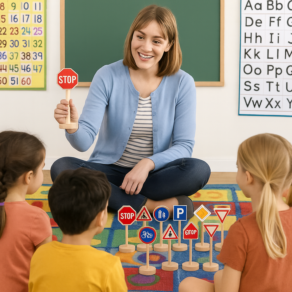 Prin folosirea acestor semne, copiii învață să recunoască simbolurile, să le asocieze cu situații reale și să dobândească deprinderi de comportament preventiv în trafic.